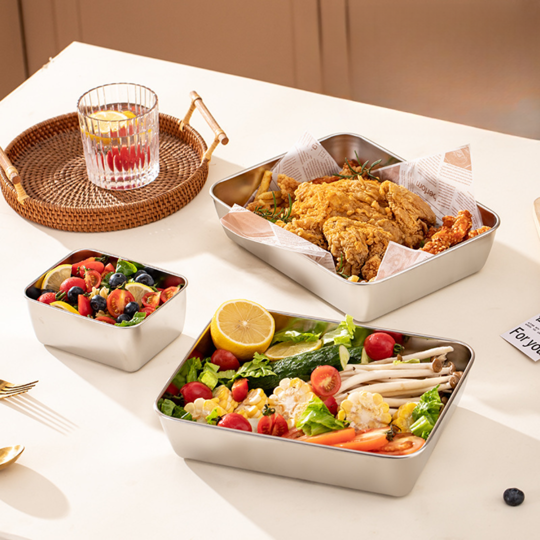 Recipient pentru alimente din oțel inoxidabil 304 – Prospețime prelungită și siguranță maximă (25x20x5 cm)